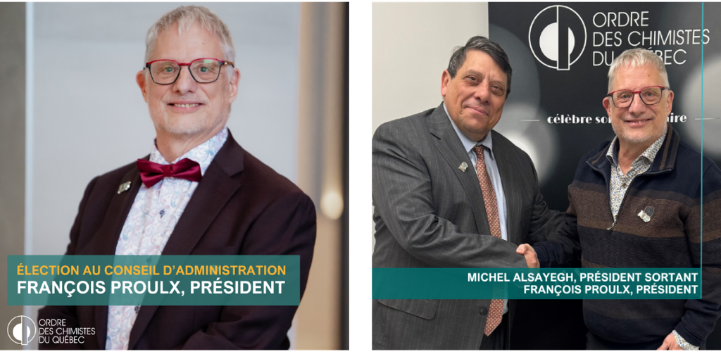 Lire le communiqué complet : Élection de François Proulx à la présidence de l’Ordre des chimistes du Québec