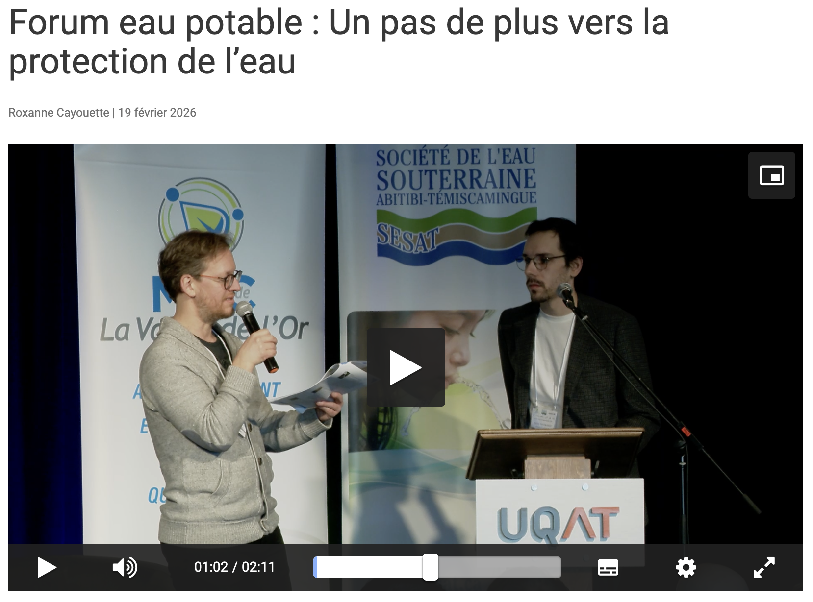 L’événement a fait l’objet d’une nouvelle de Roxanne Cayouette de TVA Nouvelles (19 février 2026) : Forum eau potable : Un pas de plus vers la protection de l’eau
