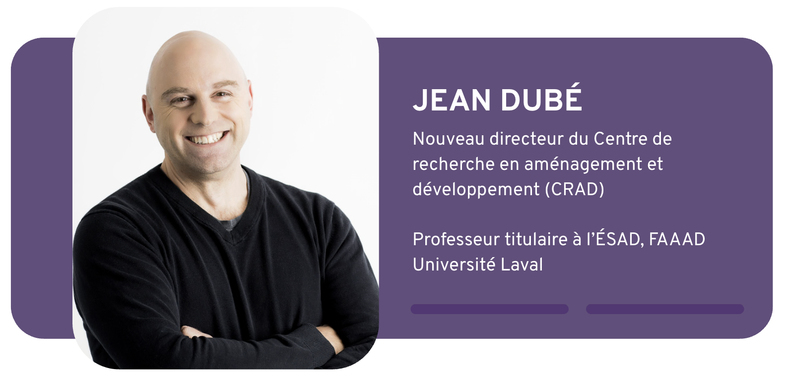 L’équipe du CRAD est heureuse d’annoncer la nomination de Jean Dubé à titre de directeur du CRAD.
